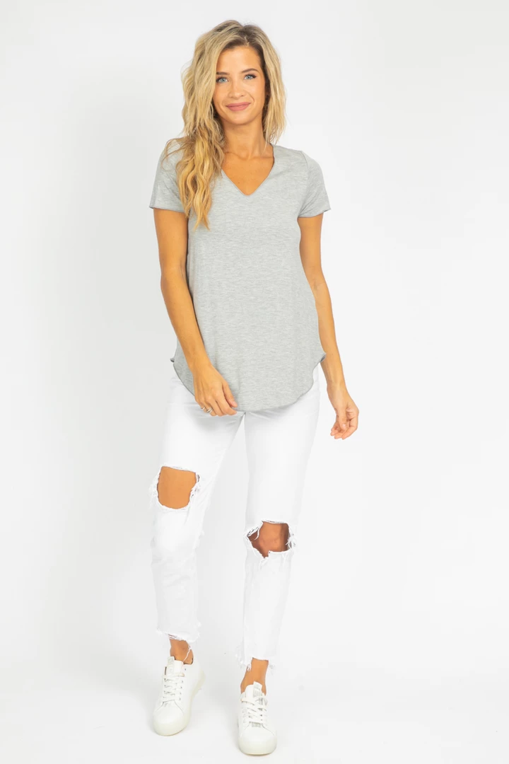 WHY WE LOVE IT: It’s not called the everyday tee for nothing. This tee is extremely soft and perfectly lightweight for every season. With a v neck and billowy fit this tee allows for max comfort, and can be layered with just about any look. Tie it up or leave it down, but however you choose to style it you’re sure to be feeling comfy cute.Â