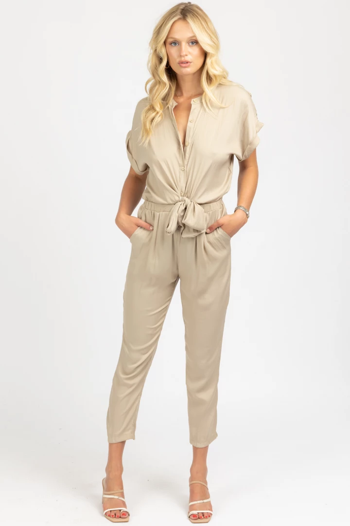 Relaxed fit, Front tie detail, Button front, Short sleeves, Collared