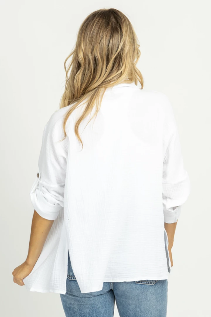 Front pocket, Short sleeves, Collared, Linen, Wooden front button