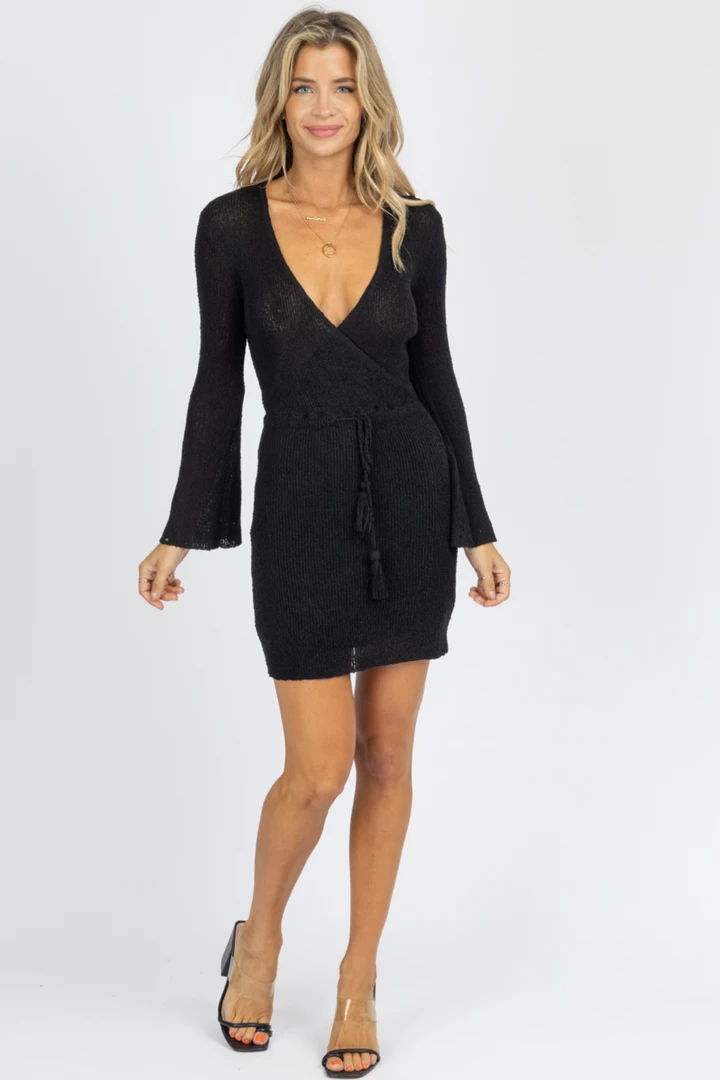 Mini length, Knit, Long sleeves, Flare sleeves, Slightly sheer