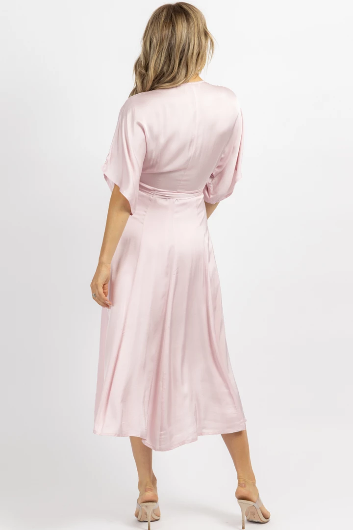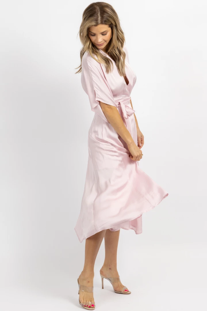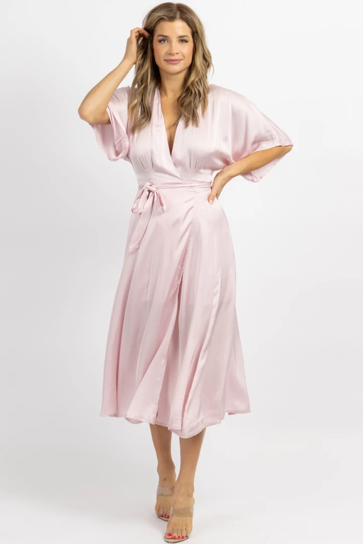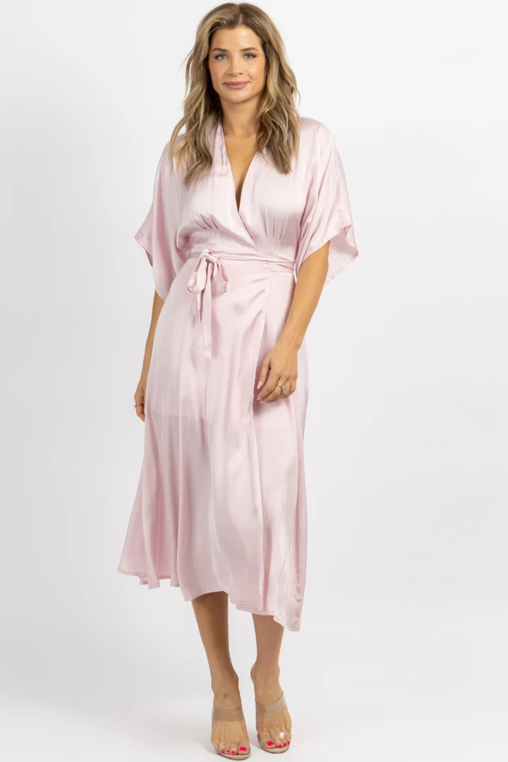 Midi length, Satin, Wrapped, Short sleeves, Self tie