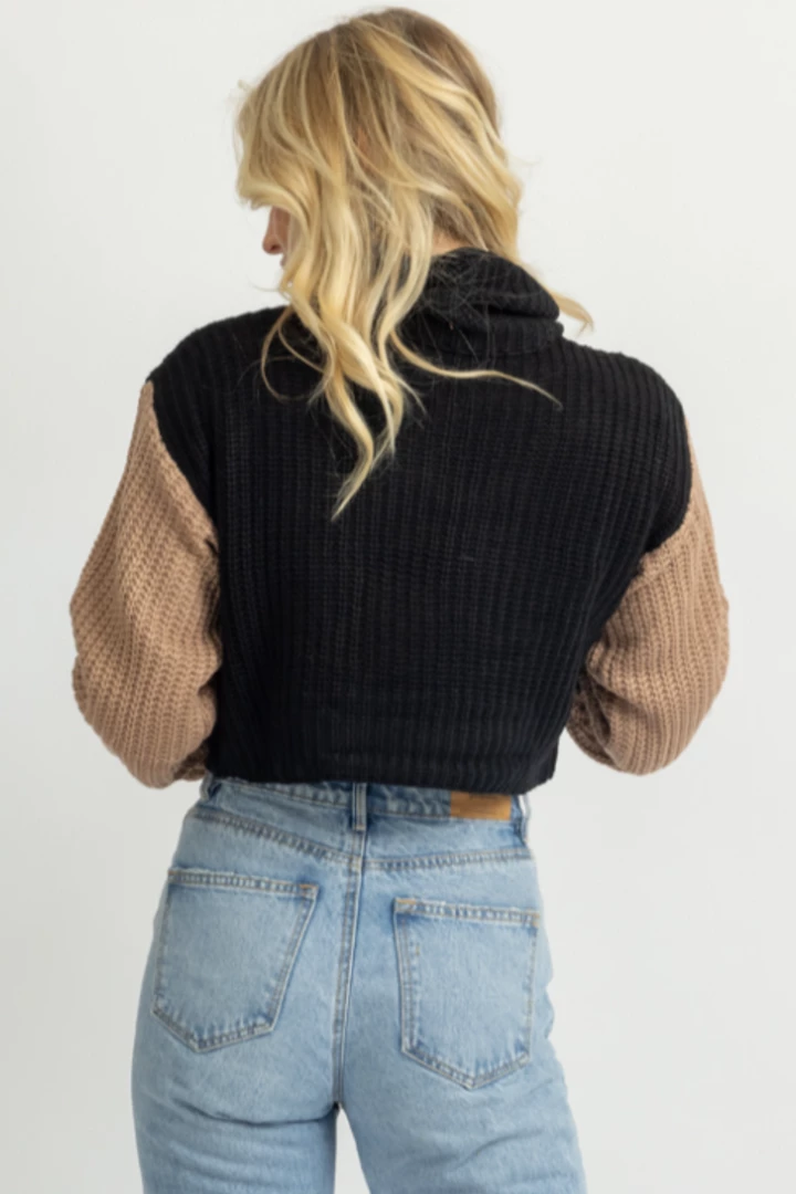 Bell sleeves, Turtleneck, Relaxed fit, Knitted, Contrast sleeves
