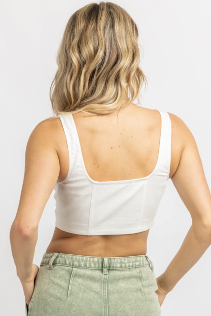 Denim, Zippered front, Sleeveless, Crop top, Corset, Tank
