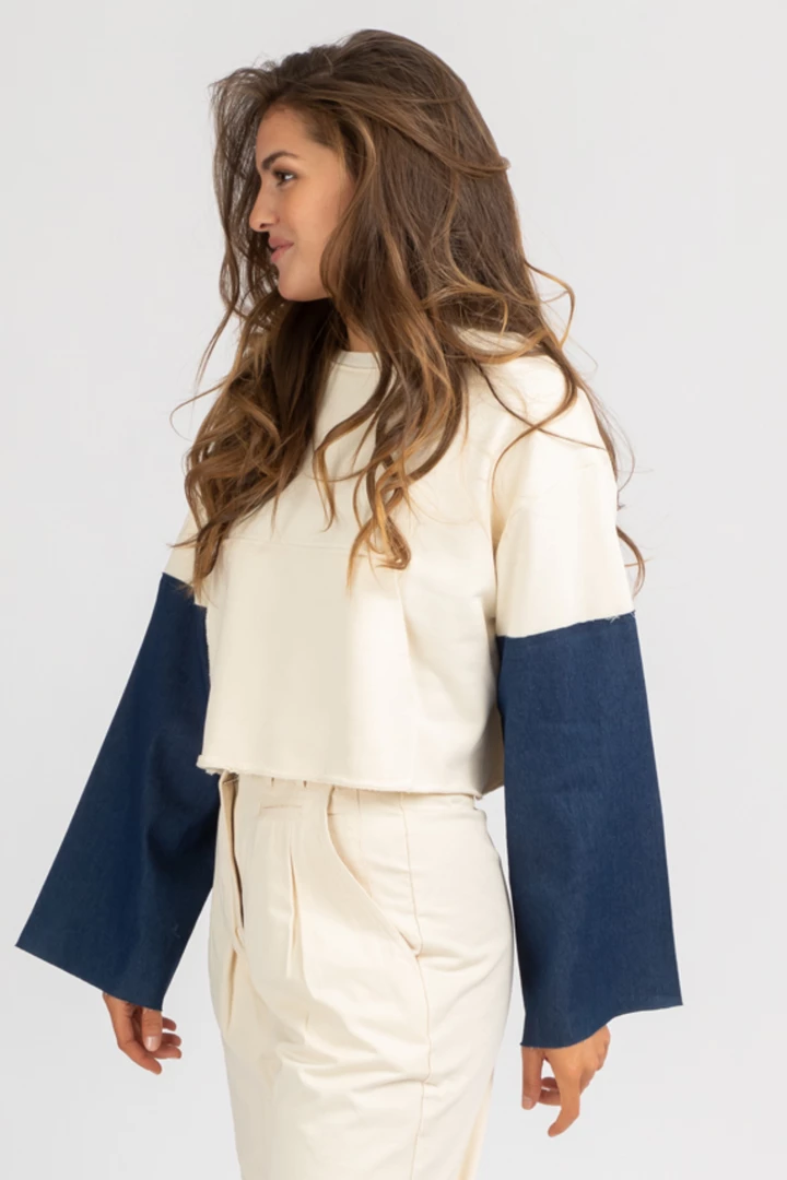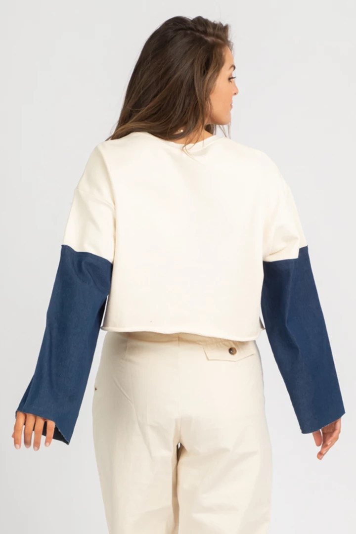 Colorblock sleeves, Cropped, Boxy fit, Raw hem, Round neck