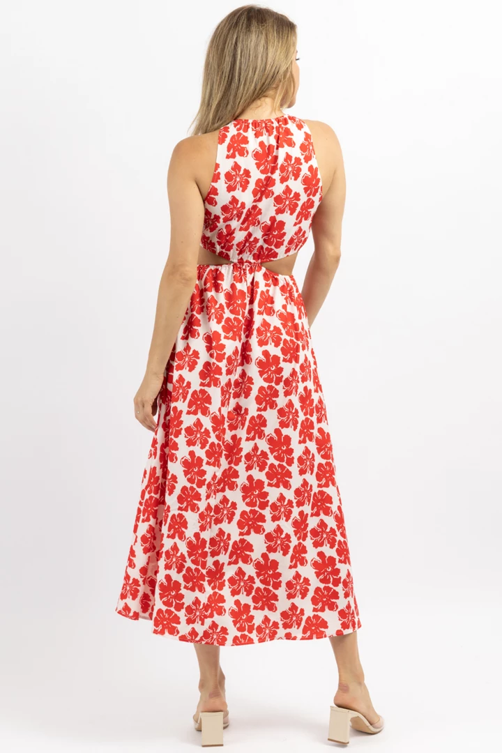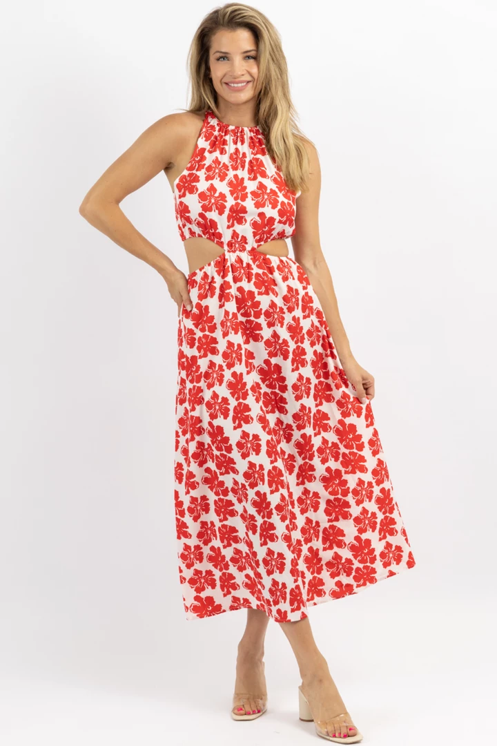 Halterneck, Cutout sides, Floral print, Midi dress, Sleeveless