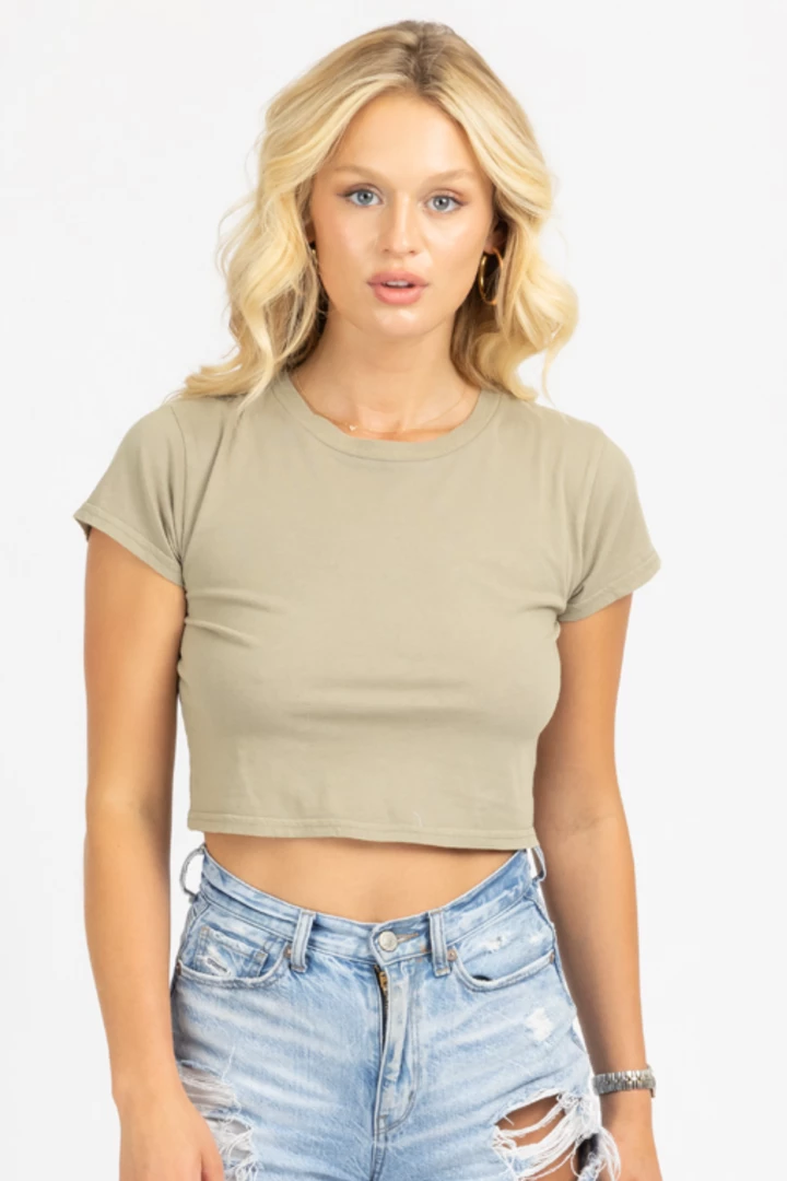 Vintage wash, Short sleeves, Cropped, Crew neckline