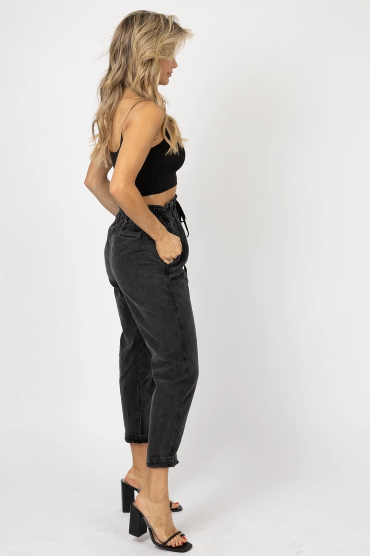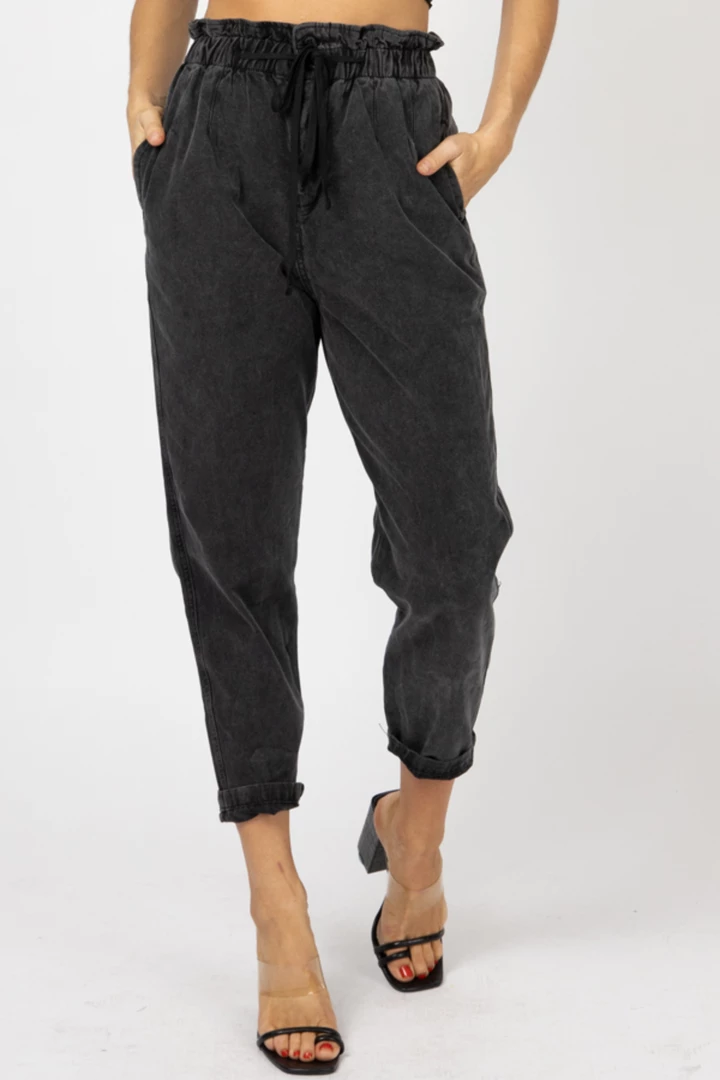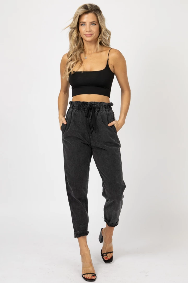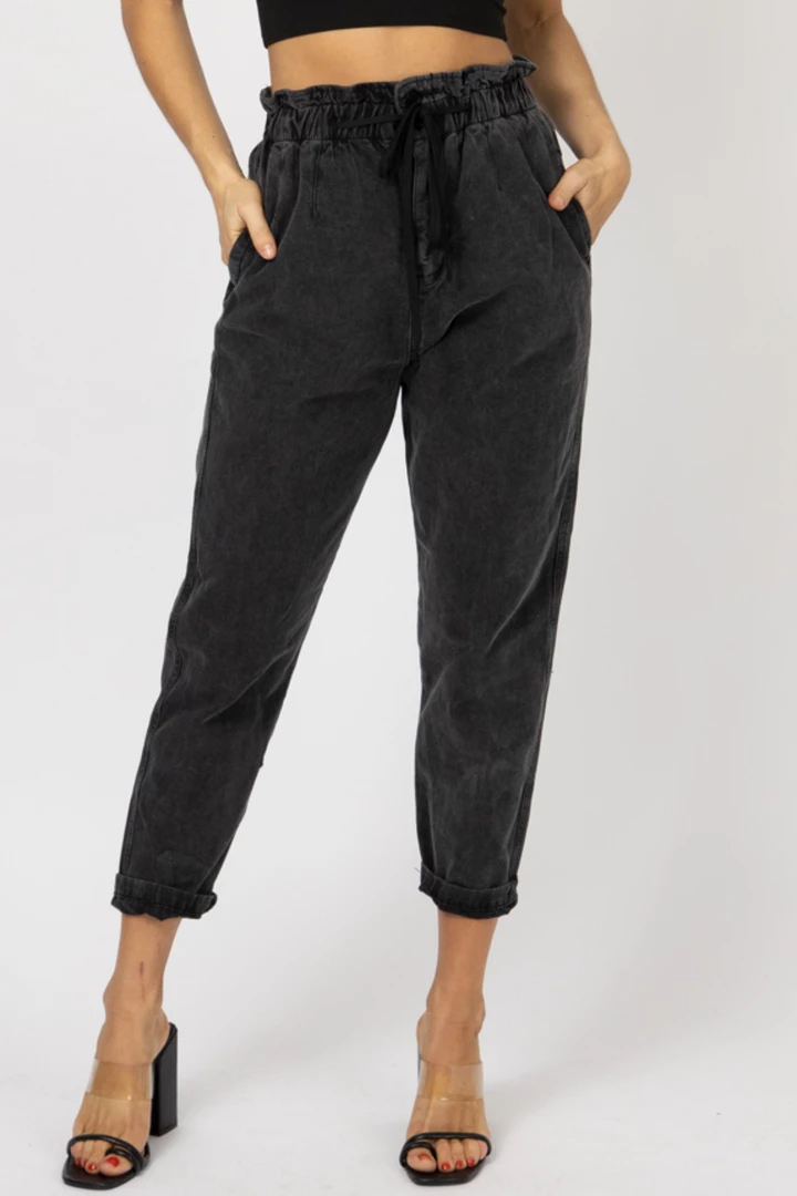 Paperbag, Elastic waist, Self tie drawstring, High waisted, Pockets