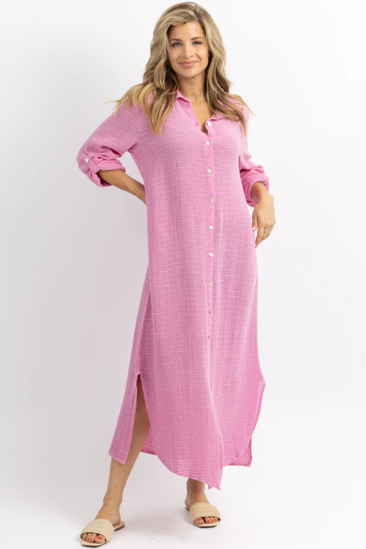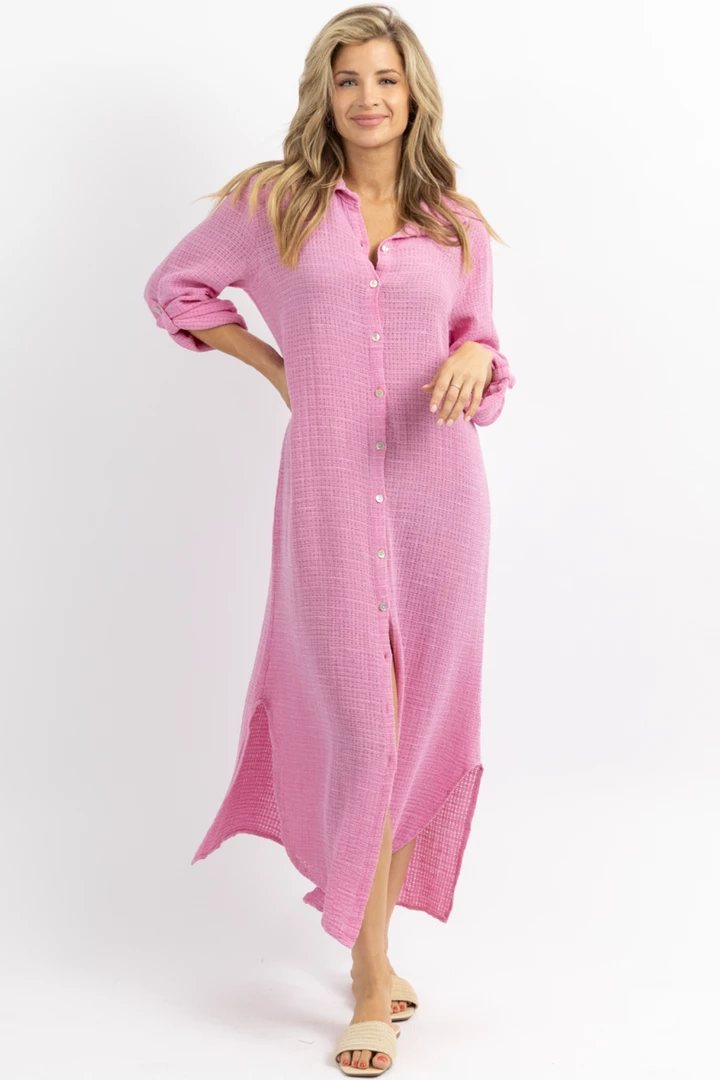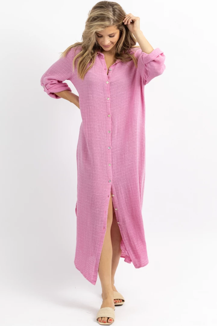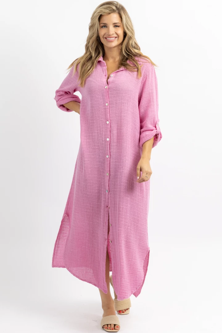 Gauze, Linenlike, Short sleeves, Rolled sleeves, Button front, Collared