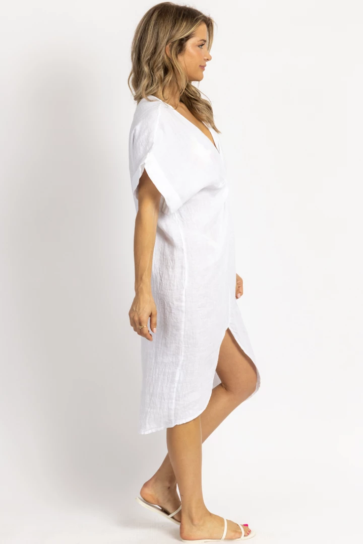 Front twist, Short sleeves, Cuffed sleeves, Midi dress, Linen