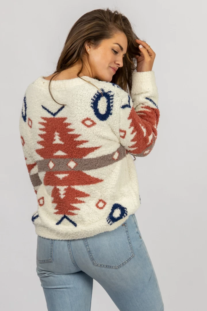 Long sleeves, Soft knit, Crew neck, Aztec print